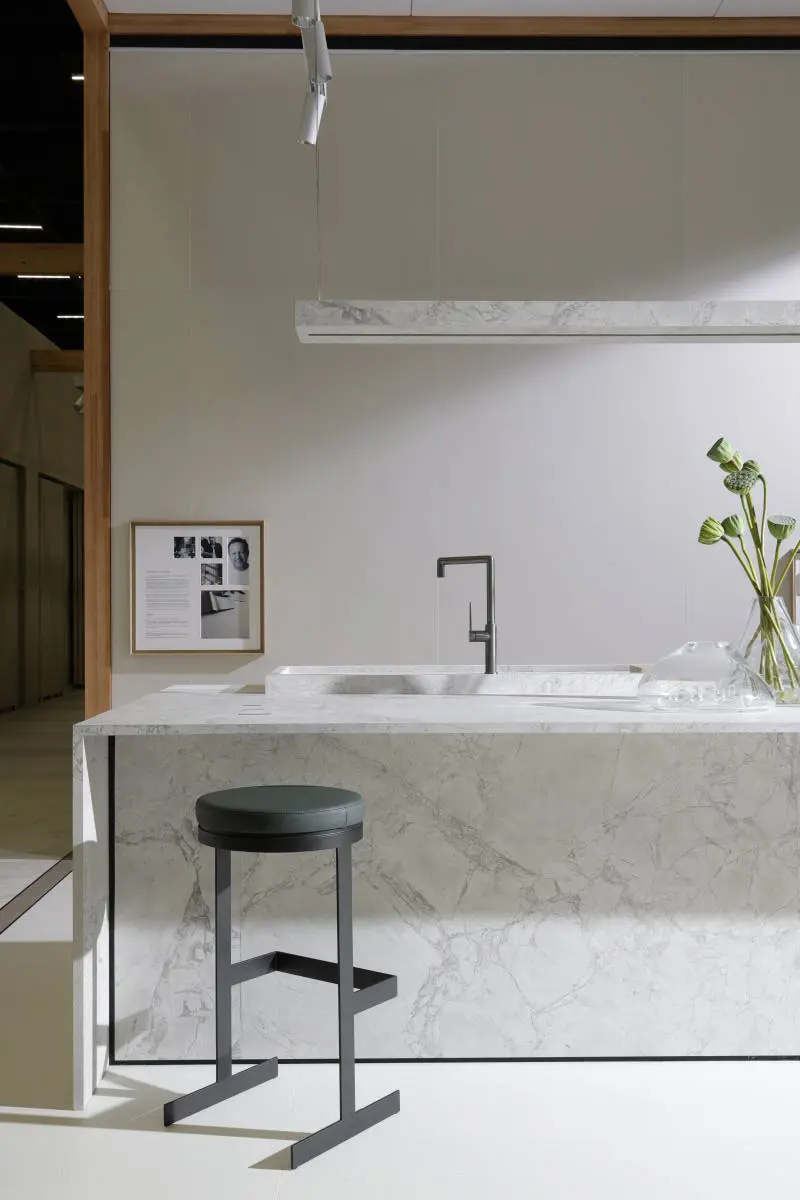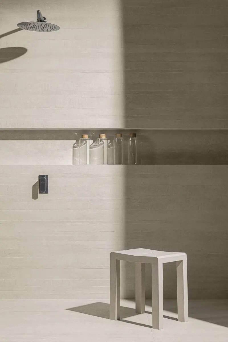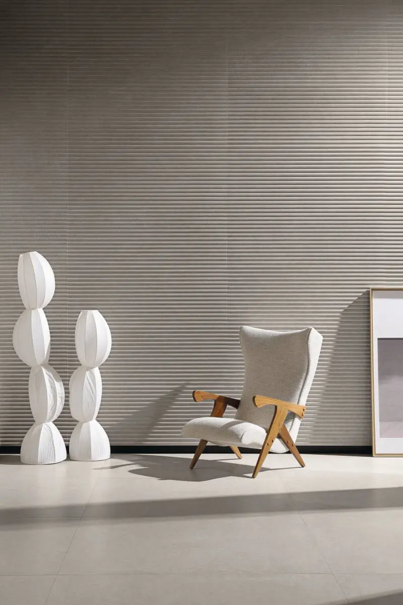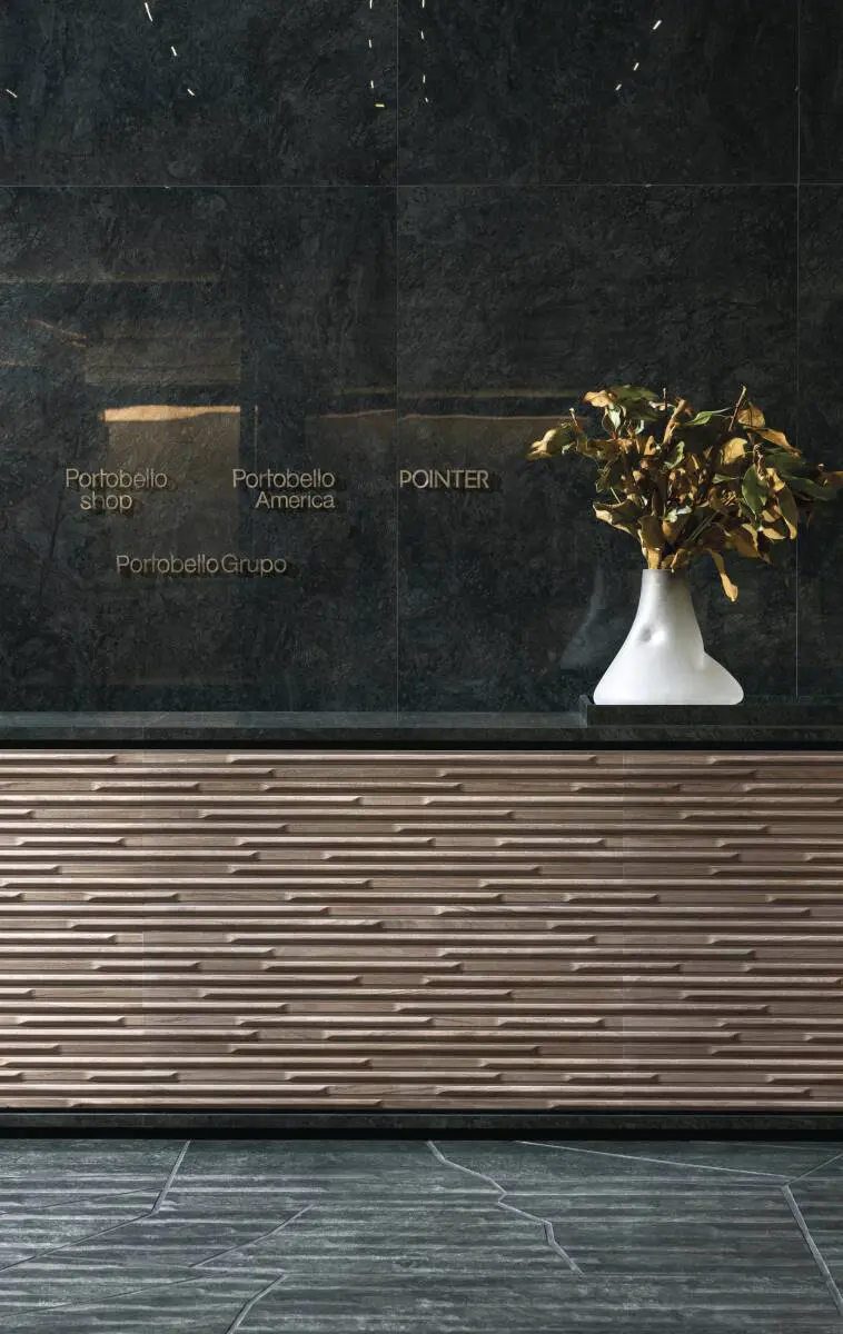 Para a Revestir, assinamos a cenografia do estande da Portobello com uma proposta que valoriza o essencial.